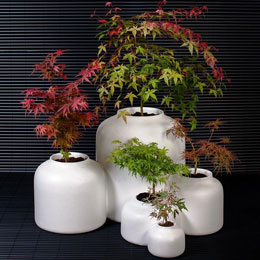 Des plantes érigées comme les iris, les graminées ou les bambous sont associées à des tapis de mousse, de fougères ou de bambous nains. Les arbustes taillés (buis ou fusains) ont également leur place dans ce décor épuré. Placés dans de beaux pots recouverts d’une fine couche de gravier blanc, ils se transforment en sculptures végétales!