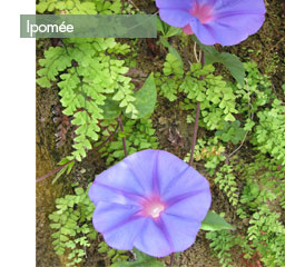 Les plantes grimpantes ou retombantes sont généreusement utilisées. Dans la palette des bleus : l’ipomée et le plumbago sont du plus bel effet. La première fleurit de juin à novembre, pousse très vite et demande très peu d’entretien. Vivace au sud, elle peut être cultivée comme une annuelle ailleurs. Le second est semi-persistant avec une période de floraison identique.