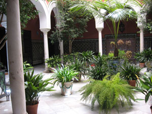 L’effet de répétition est également largement utilisé. Accumulation de pots de matière identique (souvent la terre cuite!) ou de même couleur (les pots bleus de Cordoue!), collection de plantes de la même espèce, sont des procédés efficaces pour créer un sentiment de luxuriance.